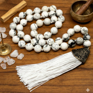 Japa Mala de Howlita: Especial para Códigos Sagrados (45 Cuentas)