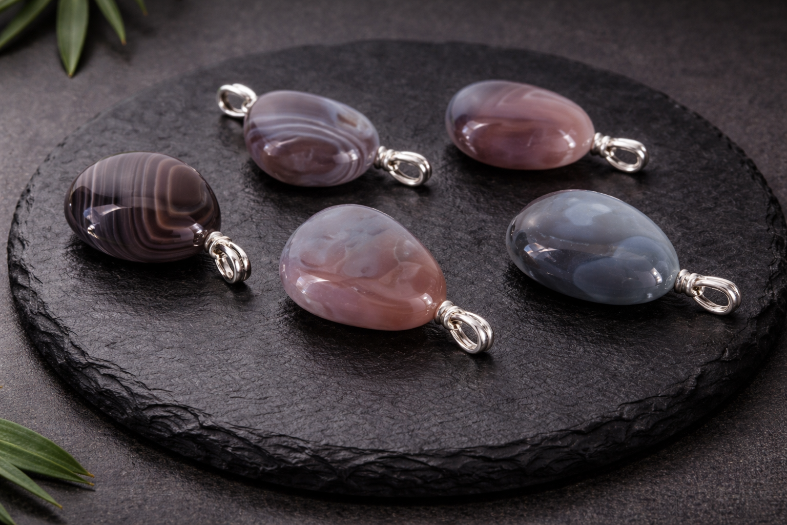 Al ser un mineral 100% natural, cada colgante de ágata Botswana es irrepetible. Sus características bandas pueden variar en forma, color e ինտensidad, creando diseños exclusivos en cada pieza. Estas variaciones no son imperfecciones, sino la esencia de su origen natural.