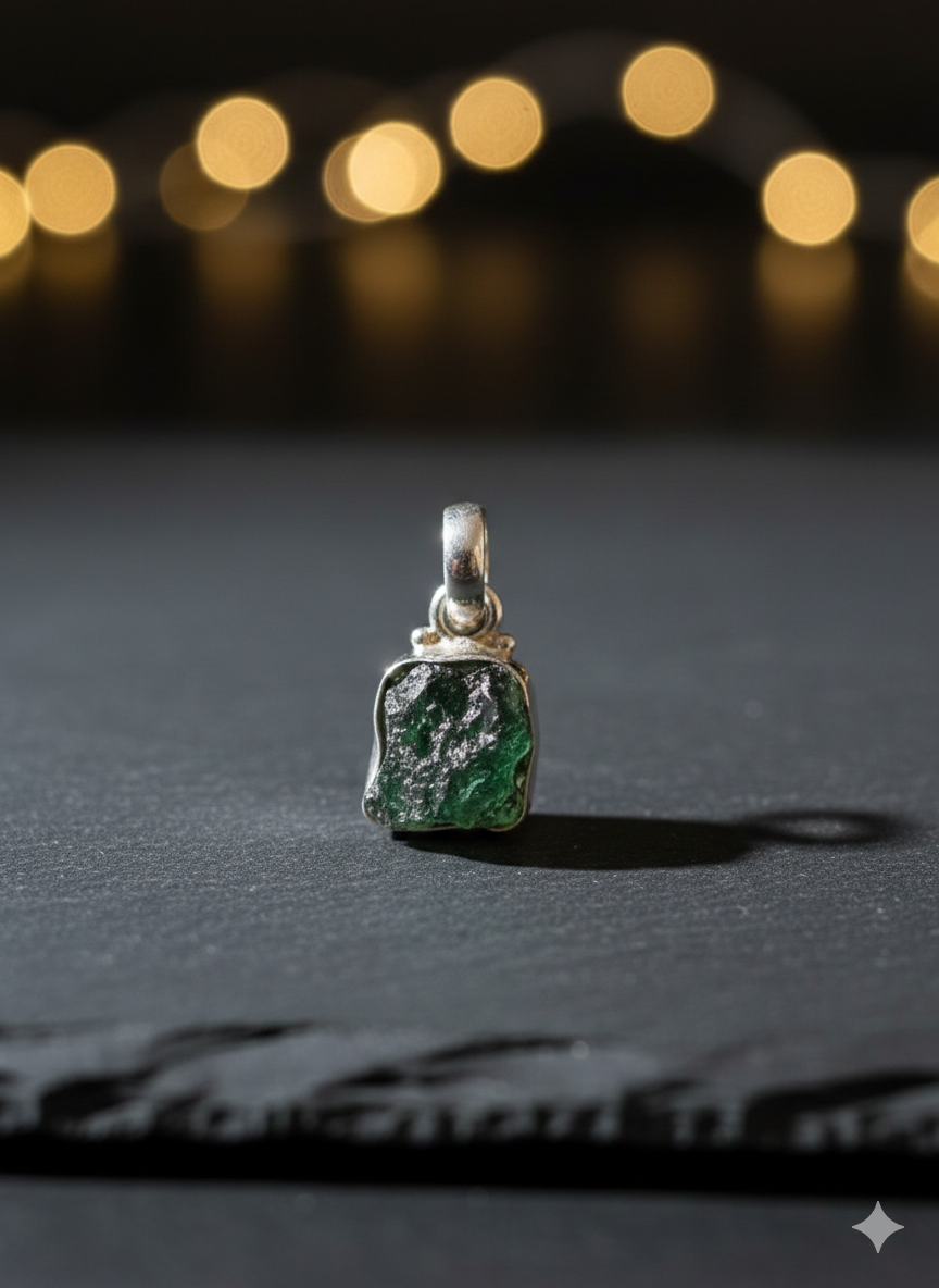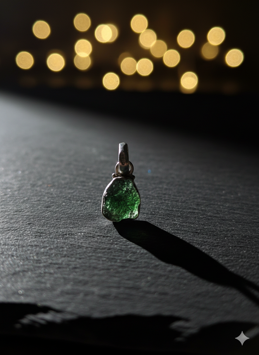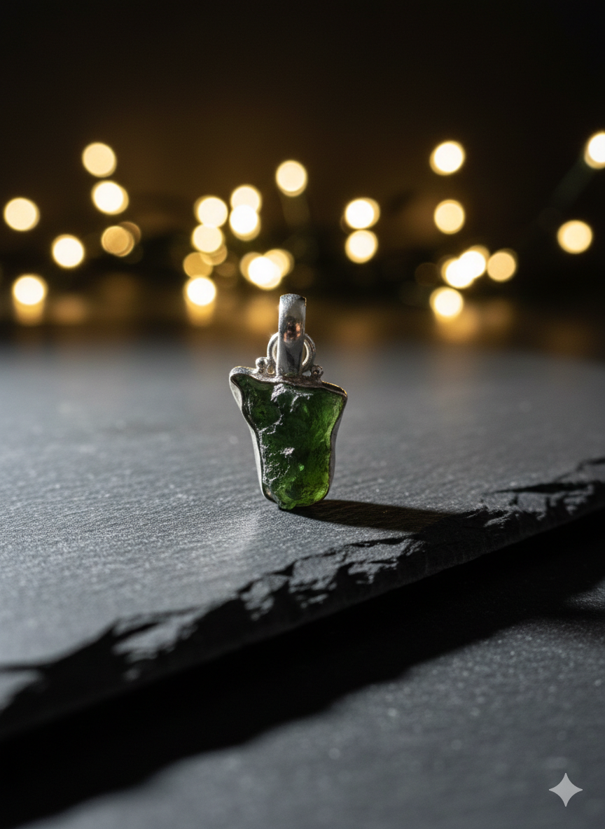 Colgante de Moldavita Auténtica – Energía Cósmica en Plata de Ley 2.50 GR APROX