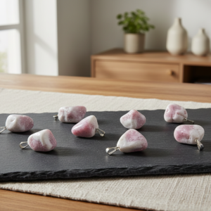 • Shungit (La Piedra Inteligente): Conocida como el «agujero negro» de las energías negativas. Absorbe y neutraliza las ondas electromagnéticas y las tensiones del entorno, actuando como un ancla de protección física y espiritual.