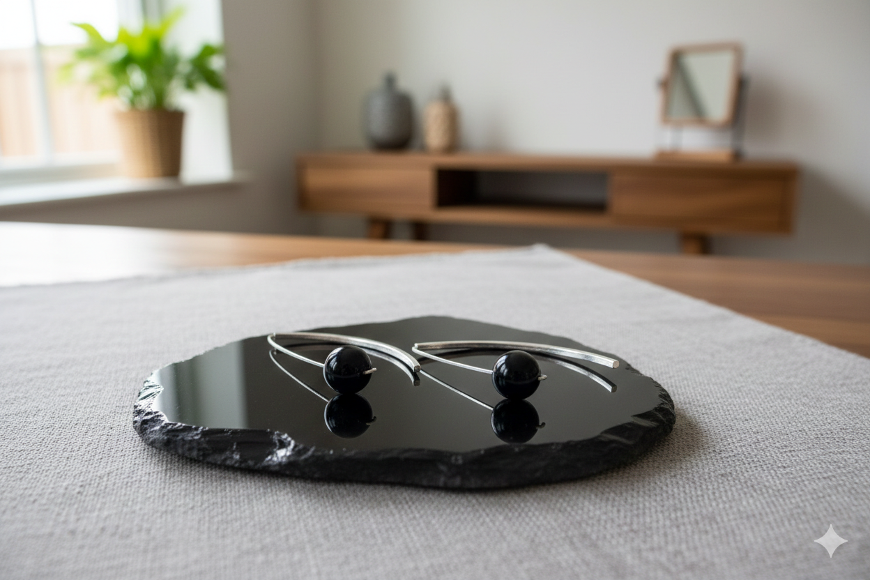 La oscuridad magnética de la turmalina se encuentra con la fluidez de la plata orgánica en estos pendientes únicos. Cada pieza ha sido diseñada para destacar la esfera de turmalina negra natural, pulida a mano para ofrecer un brillo satinado que contrasta con la estructura minimalista de plata de ley.