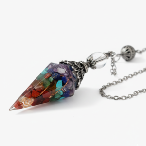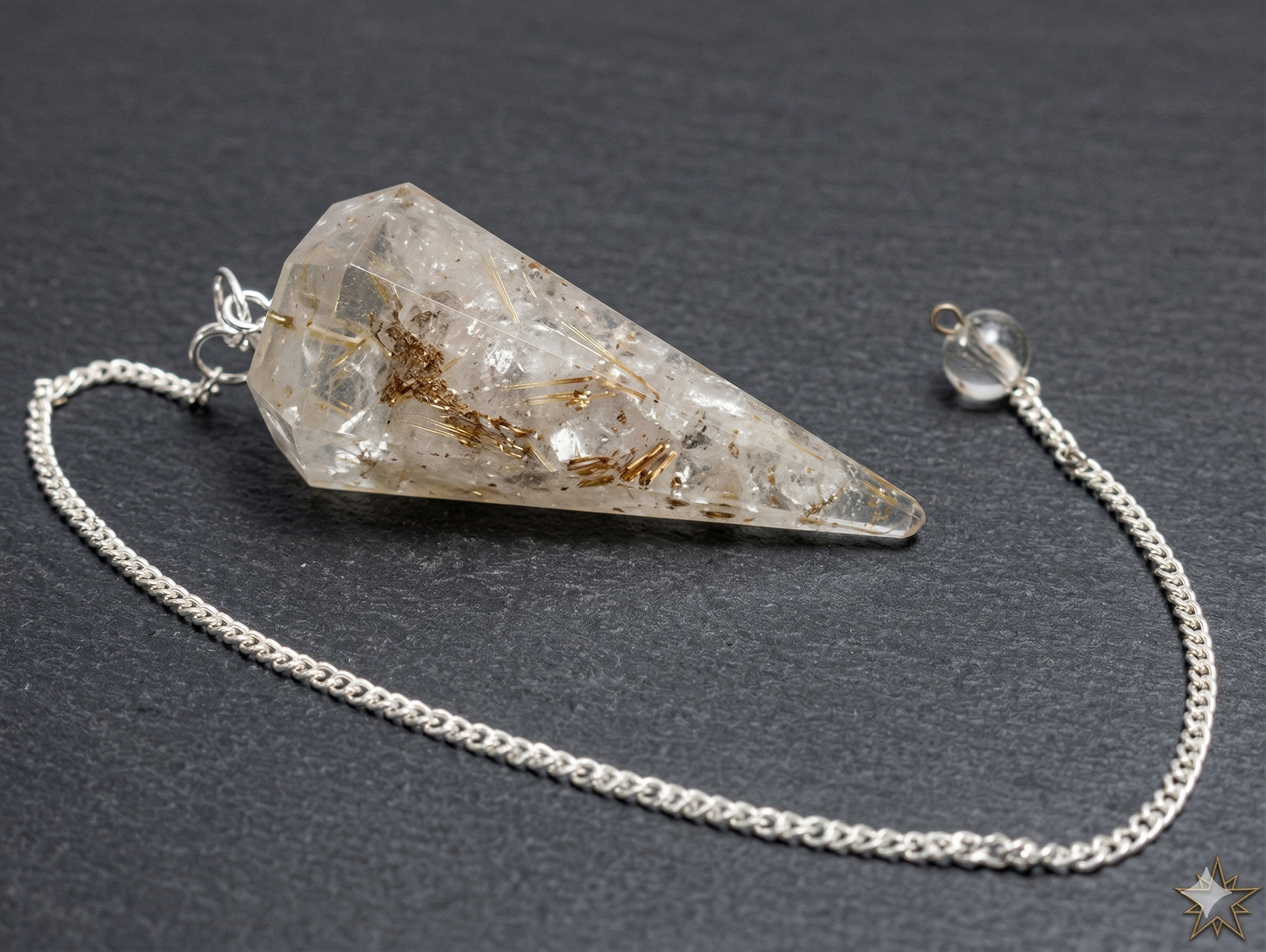 Conecta con tu guía interna y eleva tu frecuencia vibratoria con este exclusivo péndulo que fusiona la ciencia de la orgonita con la potencia amplificadora del cuarzo rutilado.