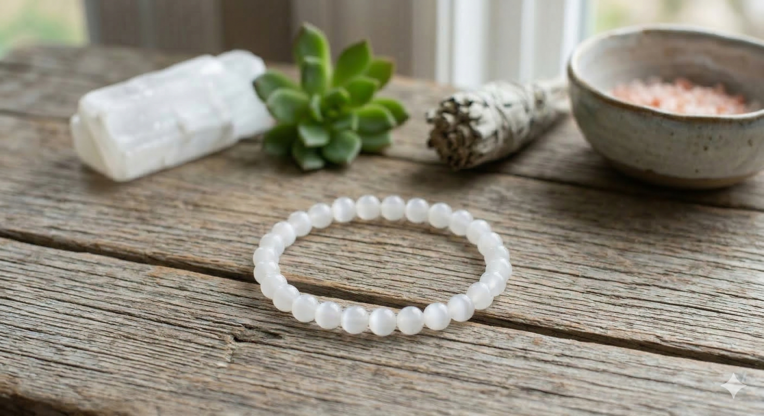 Pulsera de Selenita para Hombre (6 mm) – Enfoque y Claridad Mental