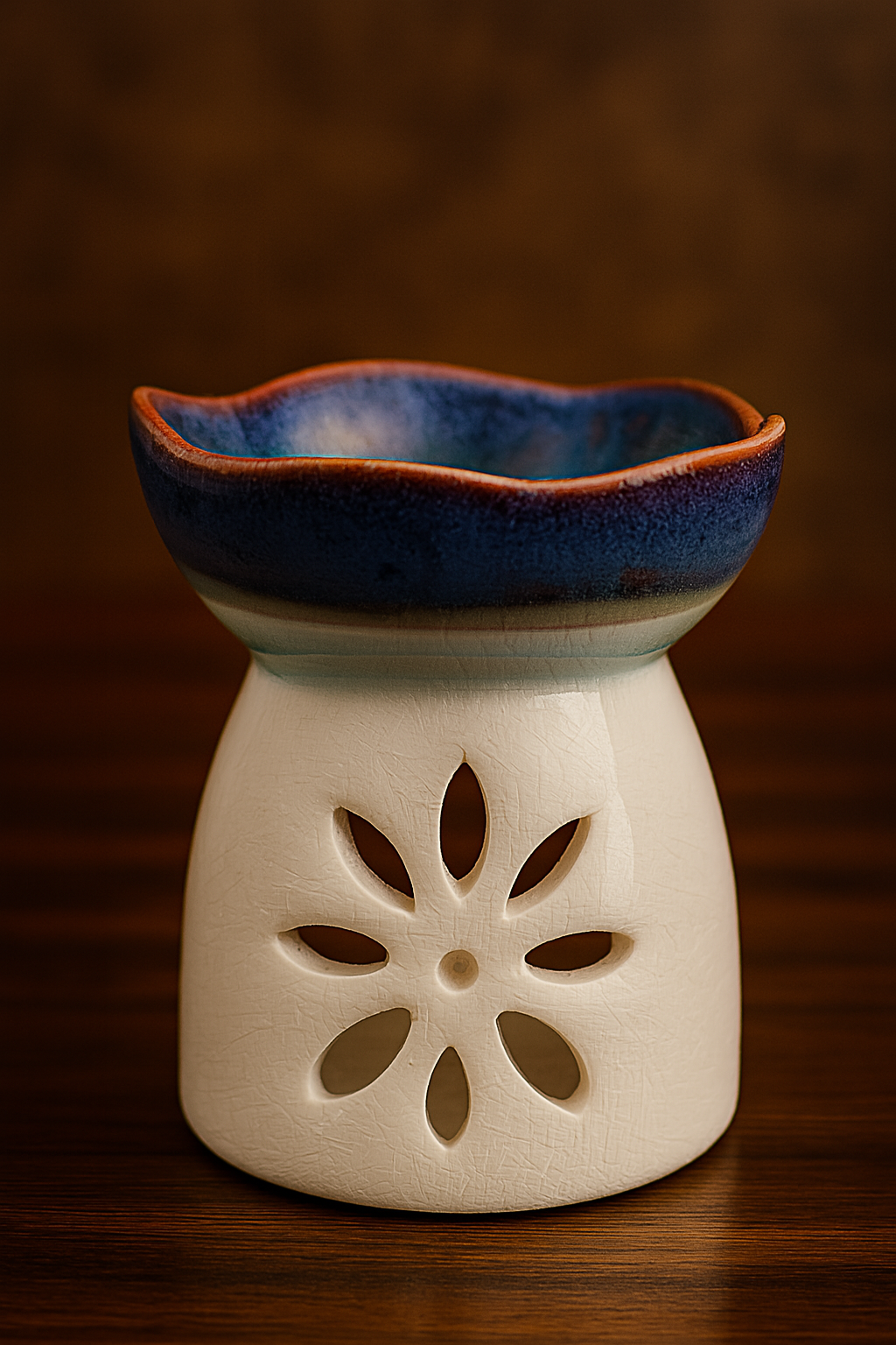 Este Quemador Flor de Cerámica combina elegancia y funcionalidad, disponible en blanco y azul, ideal para quemar incienso, resinas o aceites esenciales. Su delicado diseño en forma de flor aporta armonía y un toque decorativo a cualquier espacio.