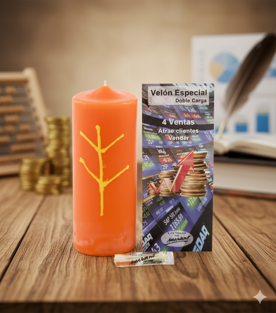 mpulsa tu negocio y atrae la abundancia. Este velón naranja vibrante ha sido diseñado específicamente para emprendedores, comerciantes y profesionales que buscan dinamizar sus ingresos. Su color naranja actúa como un motor de creatividad y entusiasmo, mientras que su «Doble Carga» actúa como un imán para nuevas oportunidades.