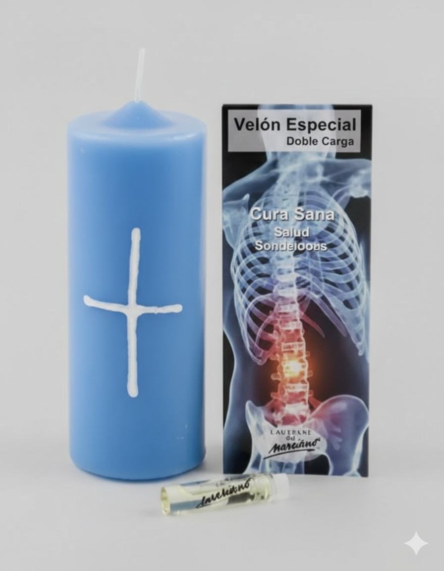 Recupera tu equilibrio y fortalece tu bienestar. El Velón «Cura Sana» es una herramienta energética de alta vibración, diseñada específicamente para acompañar procesos de recuperación física y alivio de tensiones. Su color azul profundo está asociado tradicionalmente con la sanación, la paz mental y la regeneración.